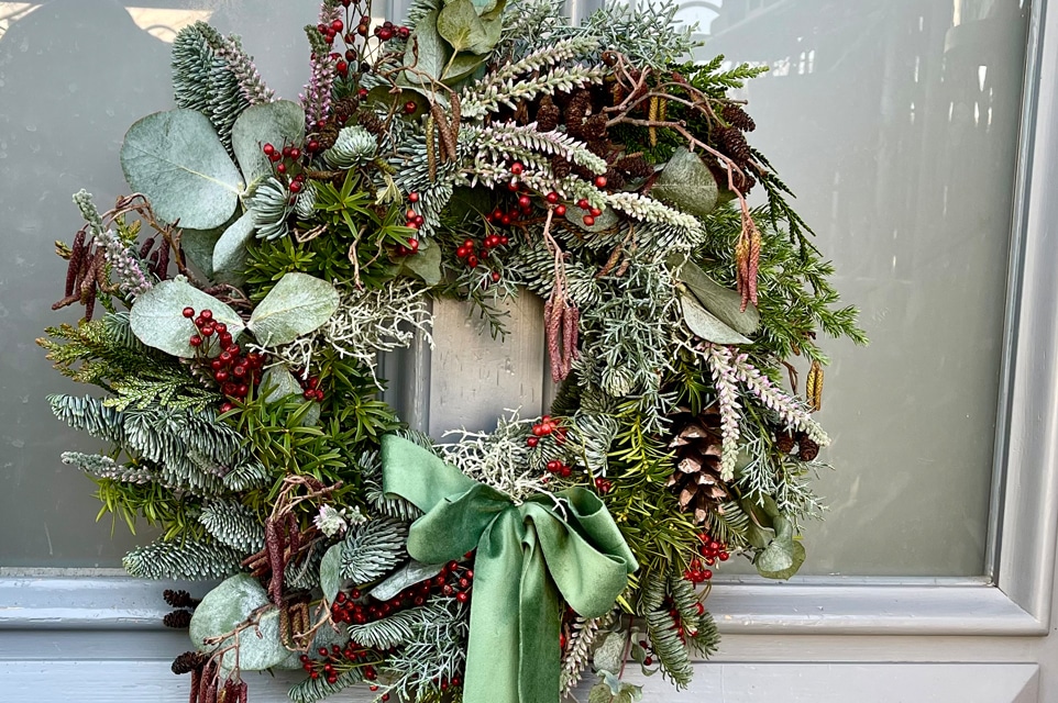 In lockerer gemütlicher Atmosphäre in der kleinen Kreativwerkstatt entstehen durch eure Ideen und mit unserer Unterstützung weihnachtliche Türkränze. Ihr könnt zwischen zwei Techniken wählen, entweder mit Ranken gewunden, oder klassisch gebunden. Aus Naturmaterialien wie Buchs, Olive, Eukalyptus und Koniferengrün entsteht ein natürlicher Kranz. Gerne kannst du ihn weihnachtlich mit Deko und Bändern garnieren.