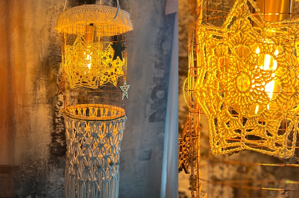 In der kleinen Kreativwerkstatt fertigen wir zusammen im vorweihnachtlichen Ambiente eine stimmungsvolle Lampe an. Die gehäkelten Sterne stehen schon für Euch zur Auswahl und zusammen dekorieren wir die Gitterlampe mit Bändern oder mit Makramee Technik. Eine wunderbarer Lampe für winterliche Abende!