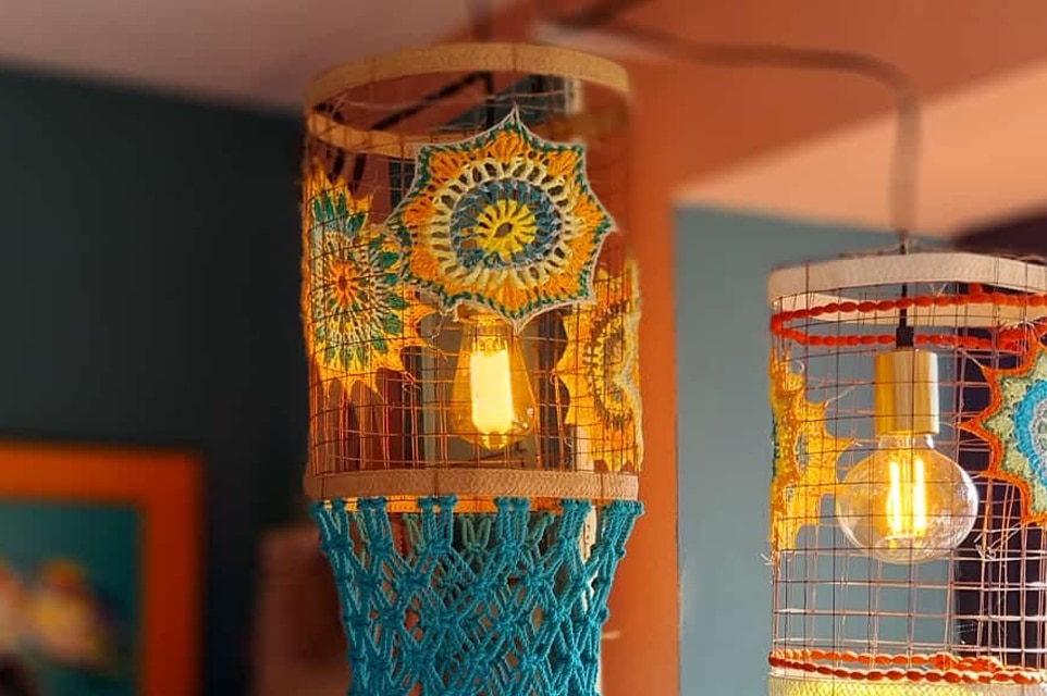 Farbenfroh und stimmungsvoll gestalten wir mit Euch eine sommerliche Boho Lampe. Damit bekommt eure Terrasse ein kleines Stück Urlaubsfeeling. Die gehäkelten Sterne stehen schon für Euch zur Auswahl und zusammen dekorieren wir die Gitterlampe mit Bändern oder mit weiteren Makramee Techniken.